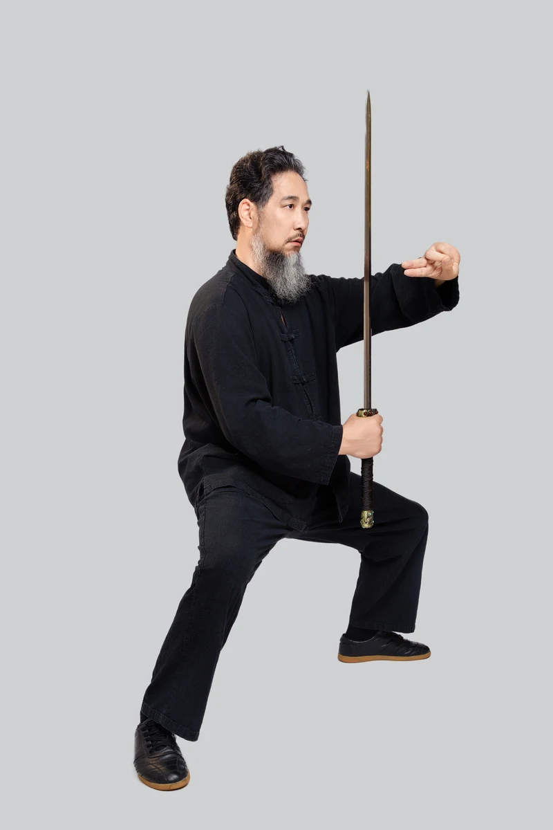 Born into a martial arts family in Jiangsu Province, he began practicing martial arts from a young age. His family has a rich heritage in martial studies, including: three generations with seven jinshi (imperial scholars), one prefecture with two commanders-in-chief, four imperial bodyguards with swords, the emperor’s conferred title of the top martial scholar in Jiangnan, and two high-ranking officials serving as the governor of Guizhou and the governor of Guangxi. He has extensively studied various traditional martial arts.